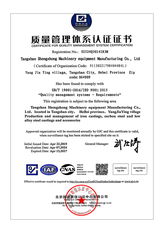 Tangshan Shengzhong Machinery Equipment Manufacturing Co., Ltd. | 唐山市圣中机械装备制造有限公司 | +86-315-5273844 | shengzhong.foundry-suppliers.com